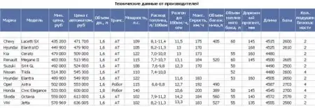 Единственная модель, которая сильно выделяется из общего фона, – Honda Civic :thumbup: . При цене, сопоставимой с конкурентами, на наш рынок этот седан поставляется только с мотором 1,8 литра. Отсюда и отличные динамические показатели. Еще в обойме у Civic довольно оригинальный внешний облик и внутренний дизайн. Если выбирать Honda, пожертвовать придется объемом багажника. :yes: