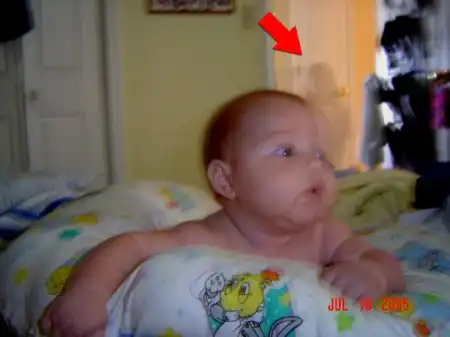 Shayne: я фотографировала своего сына. Когда я загрузила фотографии на жесткий диск, я просто была в шоке. В проеме стояла девочка. Наложение кадров исключено, так как цифровик был только куплен