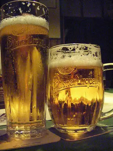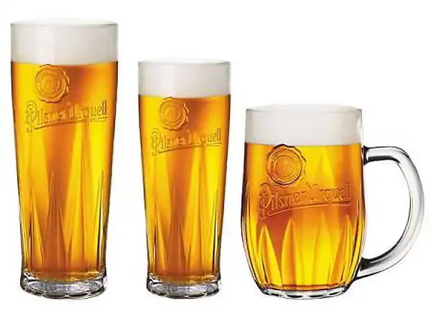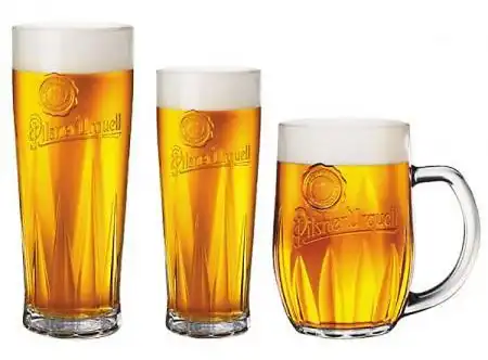 Идя навстречу пожеланиям любителей пива, свою главную продукцию и гордость - пиво марки «Pilsner Urquell», крупнейшая чешская пивоварня «Пльзенский Праздрой» рекомендует подавать в ресторанах и пивных только в фирменных кружках. В гранях кружек пиво будет играть искрами золотистого цвета, подчеркивая и дополняя гамму вкуса, аромата, пены. Форменный рельеф на пивной посуде - отнюдь не новинка. Рельефное изображение фирменного знака пивоварни на бутылке - давняя, во многом ушедшая в прошлое, традиция.