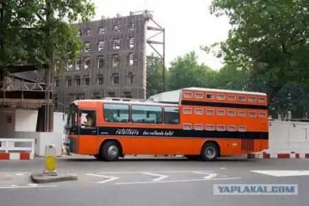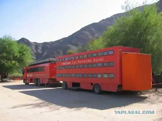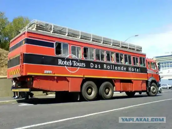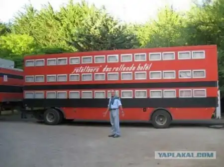 Передвижной отель по мнению проектировщиков, вещь для проведения концертов и фестивалей под открытым небом и других подобных мероприятий, когда у зрителей возникают проблемы с размещением. Передвижной отель создан на базе трейлера, и представляет собой 11-комнатную двухэтажную гостиницу. На нижнем этаже располагаются восемь стандартных номеров, на верхнем - три роскошных сьюта, способных вместить пять человек. В каждом номере есть туалет, кондиционер, телевизор, DVD-плеер и доступ в интернет.