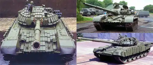 Т-72Б — оснащен динамической защитой и комплексом управляемого вооружения, а гладкоствольная пушка (вместо первоначальной нарезной) позволяет стрелять управляемыми ракетами.