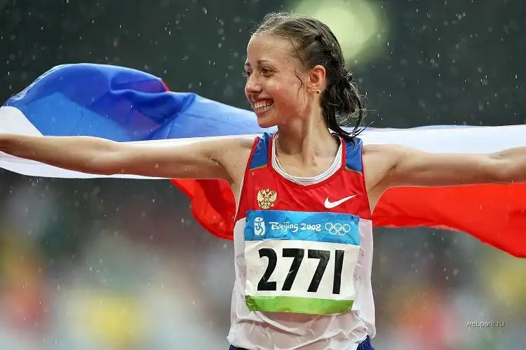 Россиянка Ольга Каниськина, финишировавшая первой в спортивной ходьбе на 20 километров на Олимпиаде в Пекине