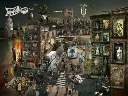 Недавно публиковалась в разделе интересности, с сайта adme.ru. На изображении срыты 82 бутылки абсолюта. Попробуйте найти хотя бы половину.
