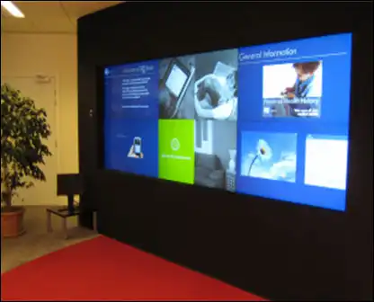 Концепция NGBank предлагает и способы оптимизации каналов привлечения новых клиентов. Так, бумажные буклеты для тех, кто впервые пришел в банк и хочет ознакомиться с условиями предоставления различных услуг, могут быть оснащены RFID-метками. Взяв такой проспект и пройдя в информационную зону, посетитель сможет узнать все необходимое с помощью интерактивной видеостены, где автоматически появится информация об услуге. Видеостена представляет собой толстое стекло с матовой поверхностью, на которую проецируется изображение. Прикосновения к экрану отслеживаются не чувствительным слоем на самом дисплее, а несколькими видеокамерами, установленными по его краям. Такие видеостены могут одновременно обслуживать несколько человек. Касаясь стены, клиент входит в нужный ему раздел информационной системы банка и получает интересующие его данные.