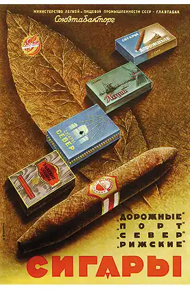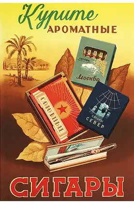 Если сравнивать рекламный плакат с политическим, то в СССР первый был, что называется, в загоне. И только в наше время они, кажется, поменялись местами. Это с полным правом относится и к рекламе сигар.