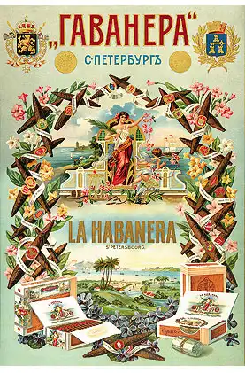 До Октябрьской революции реклама табака и табачных изделий встречалась довольно часто. Однако, к сожалению, из плакатов, рекламировавших сигары, до наших дней сохранился лишь один, демонстрирующий продукцию петербургской фабрики «Гаванера». Про другие сегодня ничего не известно.