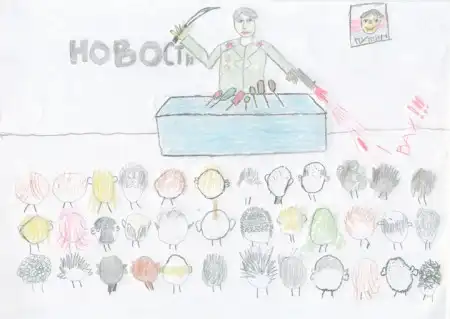 Толик в своём письме пишет: "Дети вышли в красивой одежде отпраздновать открытие Олемпеады. Они умылись и покушали. А Саакашвили приказал подавить их танкой!!!!!"