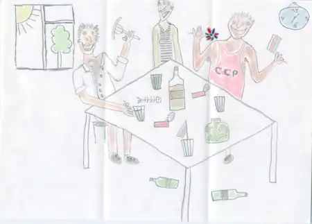 Папа с другими дядями празднует победу над грузинами Лёша и Мариша Куевда, 8 и 10 лет, г.Ясиноватая