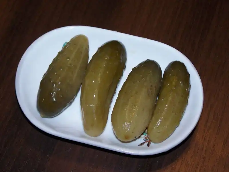 Основной компонент — свежие огурцы. Их надо нарезать тонкими ломтиками, посолить и оставить на некоторое время в тарелке или миске, прикрытой сверху. После этого останется только слить лишнюю влагу — и огурцы готовы.