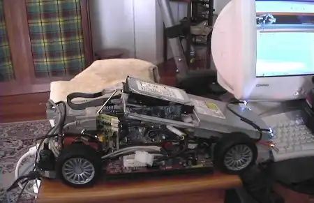 Как вы думаете, что это? На первый взгляд, смахивает на модель автомобиля, но присмотритесь повнимательнее... Видите, из-под её капота выглядывает компакт-диск? Да-да, у неё внутри привод для чтения оптических дисков, а также материнская плата, процессор и всё, что должно быть внутри компьютера. Между прочим, порты этого ПК располагаются под багажником, а светодиоды, демонстрирующие работу жёсткого диска, вынесены прямо в фары. Вот такой вот Subaru. Автор назвал своё творение MacPiper.