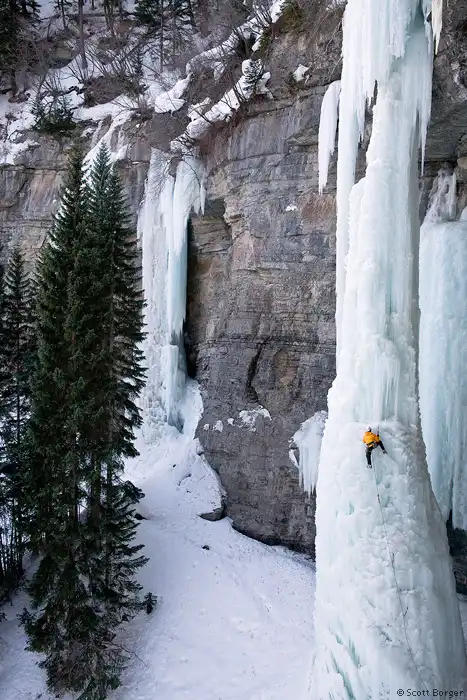 Ледяной клык — замерзший водопад, расположенный на горном курорте Вейл, штат Колорадо, привлекает альпинистов со всего мира.