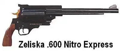 Револьвер под патрон .600 Nitro Express. Сам патрон был сделан в начале 20 века для охоты на крупную дичь. Такими патронами заряжались Штуцеры (обычно двуствольные) для охоты на слонов. У этого патрона даже появилось прозвище .600 Elephant Cartridge. На сегодняшний день этот револьвер является самым мощным среди всех револьверов, но он был выпущен в единичном экземпляре в качестве коллекционного. Сам револьвер не оборудован никакими устройствами, снижающими отдачу, поэтому стрельба из него без приклада почти невозможна - в лучшем случае револьвер вылетит из рук.