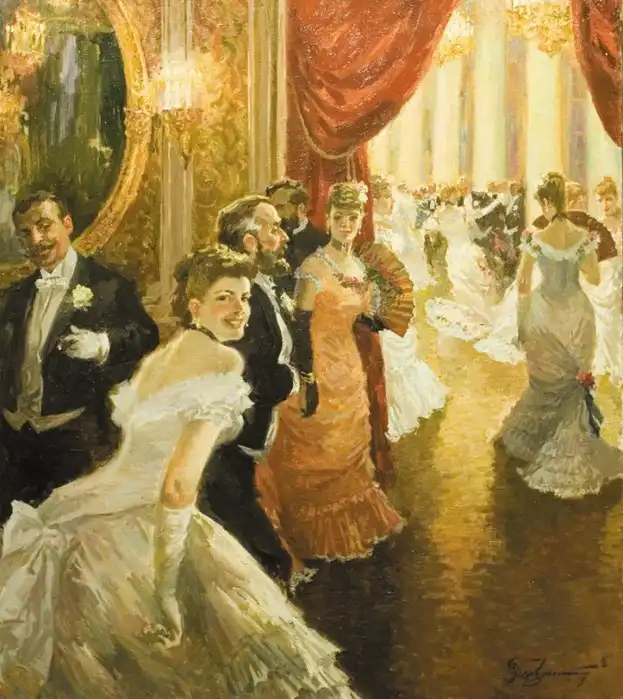 Выделяли в бальной семье также маскарады , благотворительные балы, на которые продавали билеты, а в залах устраивали благотворительную торговлю. Для этого строили небольшие, нарядно украшенные павильончики и палатки, в которых дамы-добровольцы продавали фрукты, цветы, сласти и разные безделушки. Фиксированных цен не было; каждый платил столько, сколько мог или хотел. Все вырученные от бала средства шли в пользу какого-нибудь детского приюта и на другие благотворительные цели.