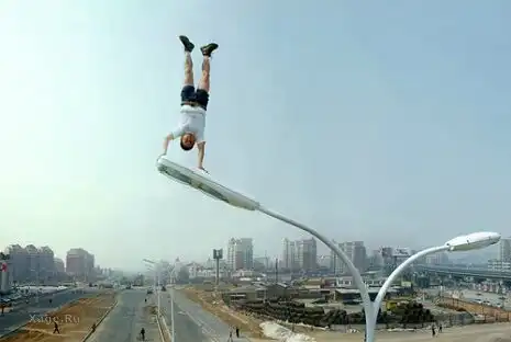 Человек любит удивлять прохожих, заставляя их усиленно думать, как же он это вытворяет. Свое дело знает просто на отлично.