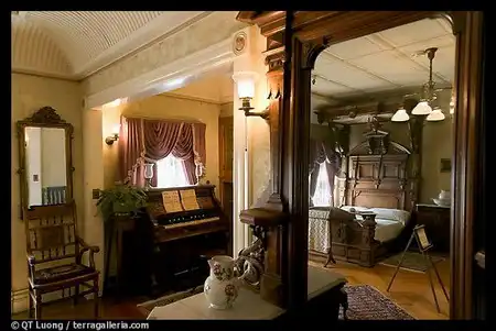 «Волшебный» Винчестерский дом – колоссальная конструкция, с которой связано много предрассудков. Одна гадалка поведала Саре Винчестер, наследнице оружейной компании, что призраки убитых из винчестеров будут преследовать ее, если только она не уедет из Коннектикута на Запад и не построит такой дом, что его не смогут закончить за всю ее жизнь. Строительство началось в Сан-Хозе в 1884 году и не прекращалось 38 лет, пока Сара не умерла. Сейчас в 160 комнатах дома обитают призраки ее безумия: лестницы, идущие прямо в потолок, двери, которые открываются посреди стены, паучьи мотивы, канделябры, крюки. С тех пор как дом был открыт для посещений, непрерывно идут жалобы на хлопающие двери, шаги по ночам, движущиеся огни, дверные ручки, которые поворачиваются сами собой. Даже если туристы не верят в призраков, место сносит крышу своей масштабностью.