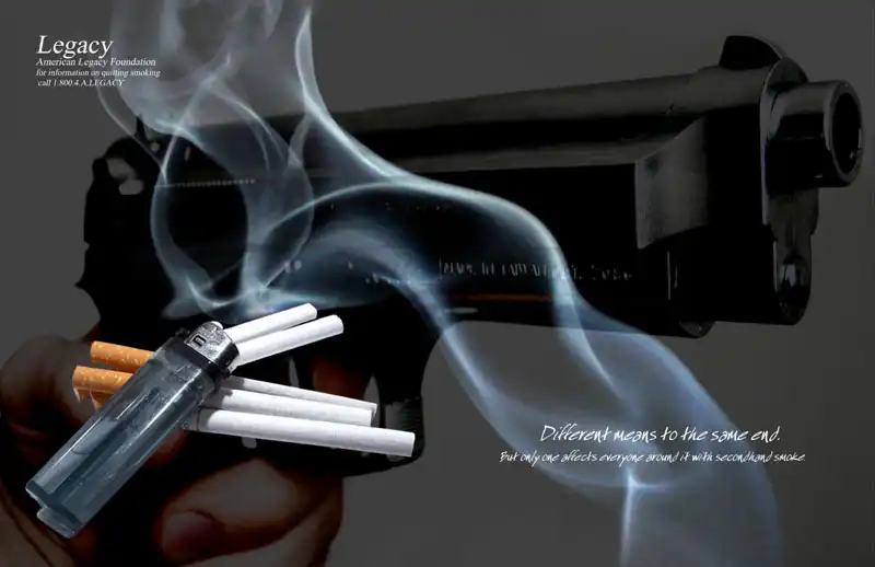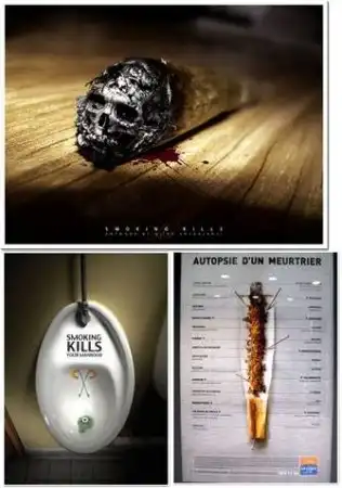 Можно посмотреть плакаты или социальную рекламу на тему курения, хотя я думаю, что все это придумано для того, что бы отмывать денежку... 50 плакатов на тему вреда курения.