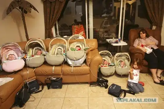 Семья Boniello из Нью- Йорка. Sophia, Olivia, Stella, Sabrina, Gerard и Trifon появились на свет в 1997 году.