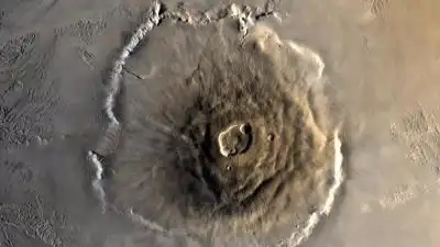 Гора Олимп (Olympus Mons) - Самый высокий пик на Марсе и самый большой вулкан Солнечной системы. Возвышается на 27 км выше опорного уровня. Этот гигантский щитовой вулкан, имеющий в поперечнике около 700 км, подобен вулканам на Земле, но его объем по крайней мере в пятьдесят раз превышает самый близкий земной эквивалент. Кальдера имеет диаметр около 90 км, причем гора окружена откосом высотой по крайней мере 4 км. Более старые вулканические породы, сглаженные и разрушенные ветром, окружают главный пик, образуя область ореала. Гора Олимп расположена в северо-западной части гор Фарсида.