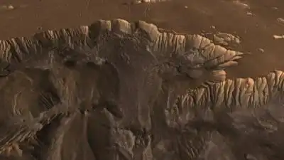 Высокие обрывы вокруг каньона Эхус на Марсе.