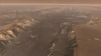 Наиболее активные процессы происходили в областях Элизиум и Фарсида. В свое время они буквально были выдавлены из недр Марса и сейчас возвышаются над его поверхностью в виде грандиозных вздутий: Элизиум высотой 5 км, Фарсида - 10 км. Вокруг этих вздутий сосредоточены многочисленные разломы, трещины, гребни - следы давних процессов в марсианской коре. Наиболее грандиозная система каньонов глубиной несколько километров - долина Маринера - начинается у вершины гор Фарсида и тянется на 4 тыс. километров к востоку. В центральной части долины ее ширина достигает нескольких сот километров.