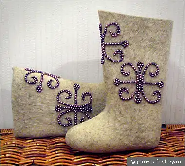 Валенки не должны плотно облегать ногу - необходимо некоторое воздушное пространство. Чтобы валенки долго служили, на них одевают калоши, человек в подобном облачении просто неуязвим для пронзительного ветра и низкой температуры. А еще валенки - это не только экологически безопасная обувь, но полезная для здоровья. Давно доказано, что овечья шерсть обладает целебными свойствами и способна излечить от многих заболеваний. К тому же валенки свалены без единого шва, что всегда ценилось любителями комфорта.