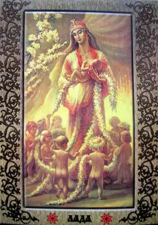 Богиня красоты, любви, семейного счастья и благополучия. Она – покровительница юности, плодородия, щедрая мать. Это корень и суть множества русских слов: ладно, ладить, лады, улаживать… О человеке, который женился без любви, говорили: «Не с Ладою женился!», а сватовство на Украине и поныне называется ладинами. Невеста ласково называет жениха – Ладо, а он зовёт её нежно – Ладушкой.