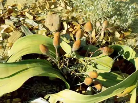 10 место: Самое аскетичное растение. Вельвичия — растет на юге Африки, в пустыне Намибии. Листья этого растения закручиваются тюрбаном вокруг себя самих. Так как в Намибии почти никогда не идут дожди, вельвичия использует свои листья для поглощения влаги... из туманов, прилетающих с Атлантики, а затем капля по капле передает ее корням.