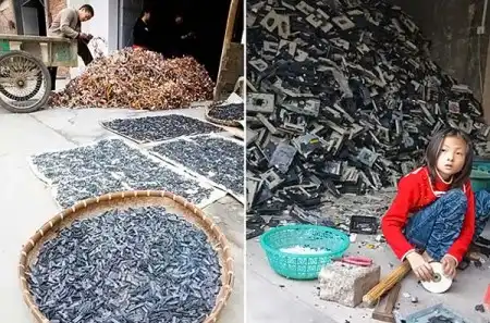 Китайская деревня Guiyu, где перерабатывают старую ненужную элеткронику, выпаивают микросхемы, сортируют их. Такой нехитрый бизнес дает в год 75 миллионов долларов.