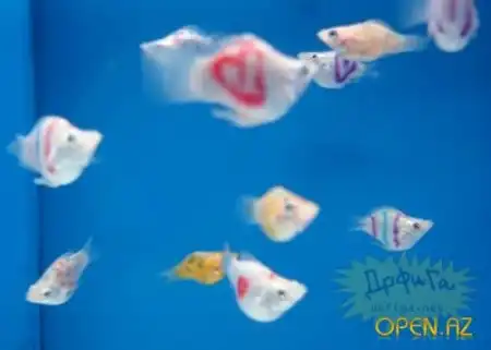 С января 2009 года Сингапур начал продажу татуированных рыб США . Рыбёшкам делают татуировки лазером в виде сердечек , кружков , полосочек . Стоит такая модифицированная зверюга 15 баксов за штуку.