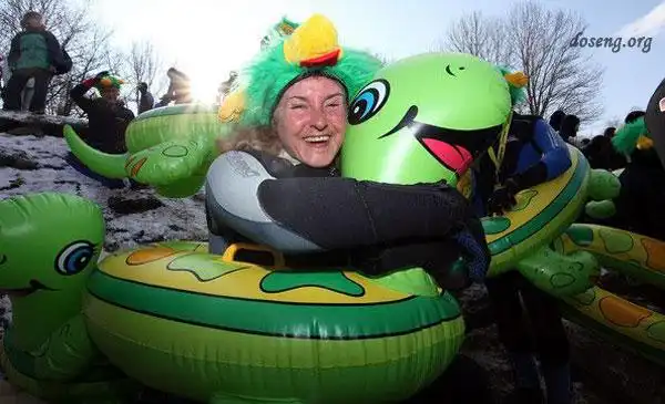 В этом году исполнилось 40 лет, как возник клуб любителей зимнего купания Neuburg. Годовщину отметили бурно, приблизительно 2000 участников - члены клубов по зимнему купанию по всей Германии и за ее пределами устроили костюмированные мини-демонстрации.