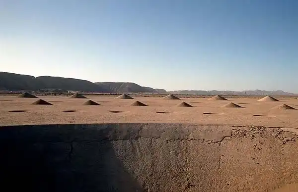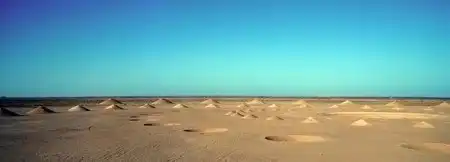 "Дыхание времени" создал человек, точнее группа людей, притом не так давно. (Группа D.A.ST. - сотрудничество между тремя художниками: Danae Stratou, Скульптор, Александра Стратоу, Индустриальный Проектировщик, и Стелла Константинайдс, Архитектор. Группа была сформирована в мае 1995, основанная на общем желании создать установку в пустыне. Участок, который был выбран - плоское пространство песка, который находится между Красным морем и телом гор. Работа покрывает область ста тысяч квадратных метров и вовлекает смещение восьми тысяч кубических метров песка. Сто семьдесят восемь конических объемов формируют две взаимосвязанных логарифмических спирали, которые перемещаются из общего центра с различием фазы ста восемидесяти степеней в том же самом руководстве вращения. Одна спираль состоит из вогнутых конусов, в то время как другие выпуклых. Центр- глиняное судно с секцией W - союз положительного и отрицательного конуса. Если ёмкость заполнить водой, выдающийся конус в центре сформирует крошечный остров на уровне горизонта. 7 марта 1997 было закончено строительство "Дыхания пустыни".