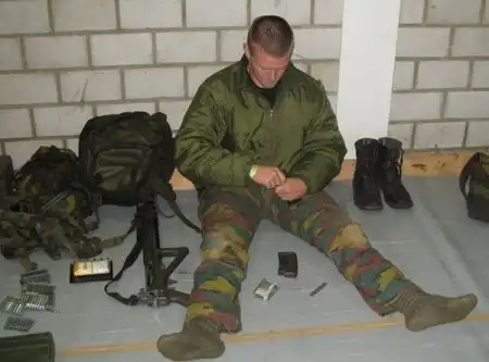 Выглядит это так. Кадровых военных в стране всего около 9000, в основном в авиации. Находящихся на службе и переподготовке – порядка 10-15 тыс единовременно. Солдат призывается на 90 дней в т.н. Rekrutenschule - Ecole de recrue. После окончания государство отдаёт бойцу личное оружие с двумя полными магазинами (винтовка и/или пистолет), «консерву министра», три комплекта формы на все времена года, снаряжение, бронежилет и каску, с которым он и убывает домой. Хранит он его как хочет – никто проверять не будет.