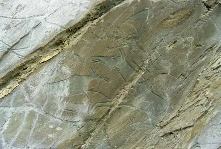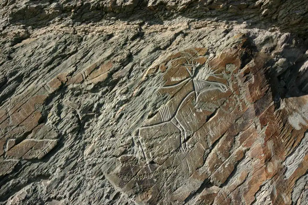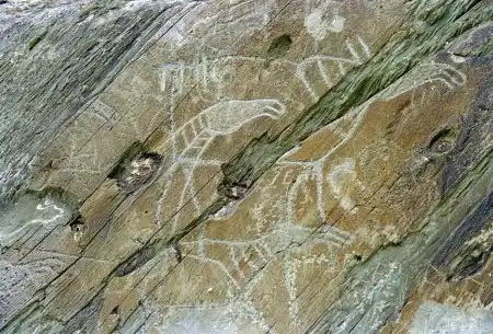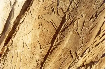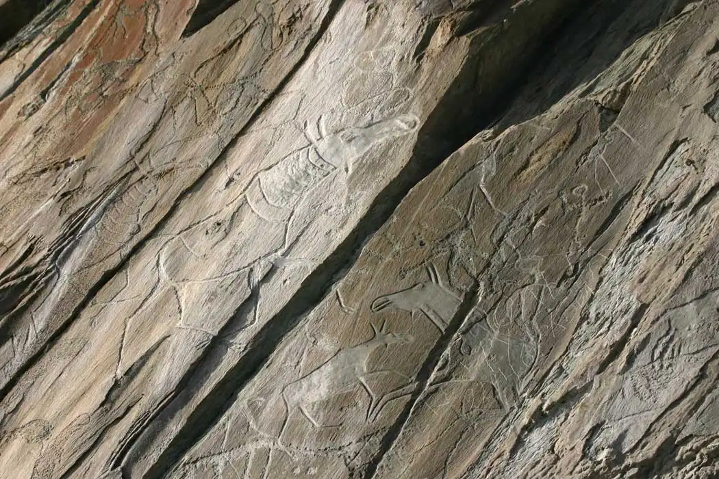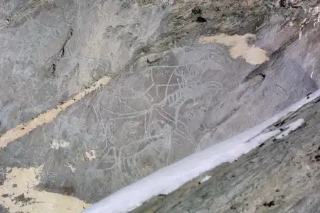 Изображения эпохи бронзы отличаются по технике и стилю от более древних рисунков. Среди них "объемные" контурно прочерченные изображения.