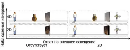 Так вот, если аппарат, формирующий для вас 4D-образ, будет ещё и менять его синхронно с перемещением внешнего света вправо-влево или вверх-вниз, — это и окажутся дополнительные два измерения отображаемого предмета. Получим 6D.
