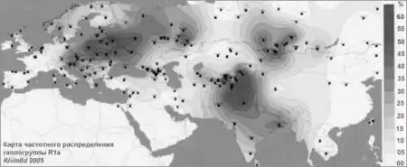 В процентах указана доля R1a от общей численности этносаРусские 47%