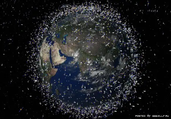 Со времени запуска в 1957 году первого искусственного спутника по 1 января 2008 года было произведено около 4 600 пусков — это около 6 000 спутников. 400 из них за пределами земной орбиты. Из оставшихся 5 600 работают около 800. Связь с остальными потеряна. Плюс огромное количество всяких осколков и останков — от потерянных на орбите отверток до топливных баков. Все фотографии можно увеличить. Масштабы поражают.