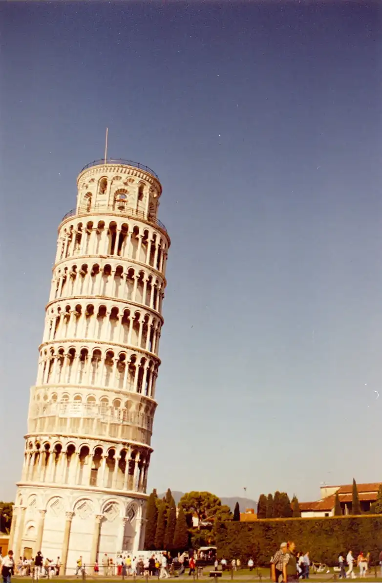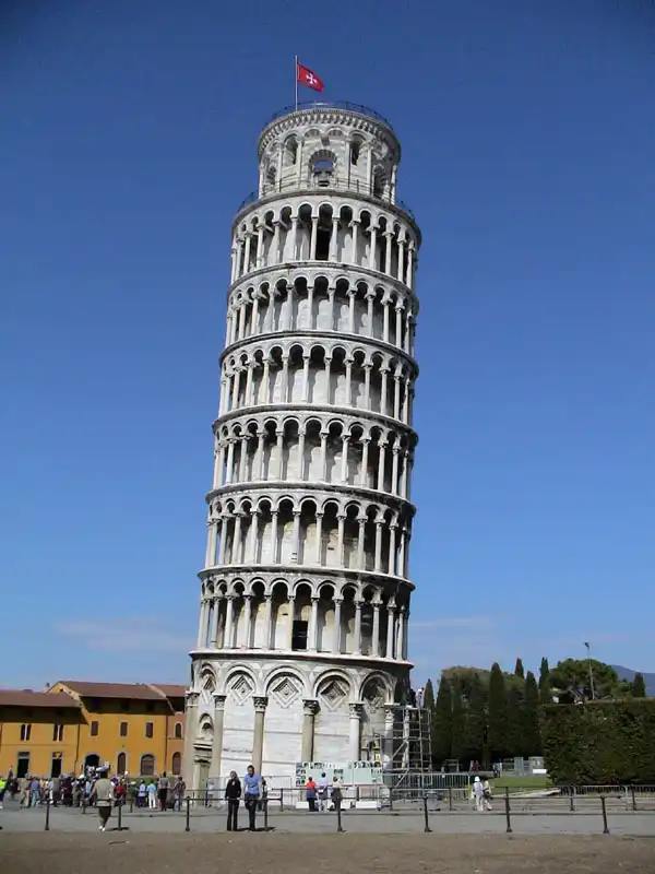 Вскоре, после начала строительства в 1173 году, фундамент Пизанской башни положили неровно. Строительство было остановлено и возобновлено только спустя 100 лет. Только потом стало ясно видно, что Пизанская башня "падает" наклонившись к югу. С того времени, как начались постоянные измерения башни в 1911 году, было зафиксировано, что вершина наклоняется на 1,2 миллиметра в год. На сегодняшний день, вершина Пизанской башни наклонена на 5,3 м от центра.