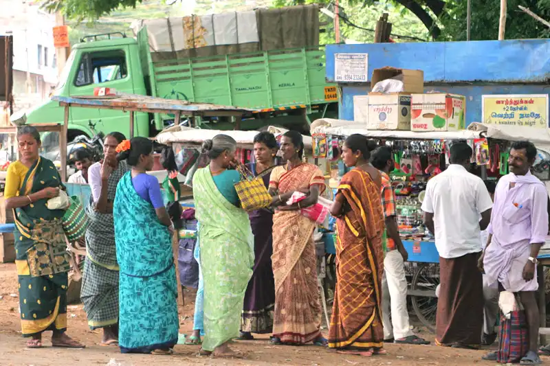 Высший свет бангалорского общества. Выходные шелковые сари и пенджаби, да и цвет кожи гораздо светлее чем у деревенских.