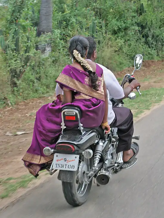 обычное дело, увидеть мопед, которым правит индус, за ним боком сидит жена, одной рукой одна прижимает младенца, в другой у нее сумка, а сзади еще один ребенок постарше, или два... аборигены утверждают, что часто они падают. по одному или вся конструкция сразу