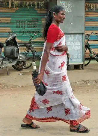 Действительно, индианки очень красивы, не потому что красивы на лицо, они скорее грациозны. "Походка легкая, от бедра. Раскованная свободная пластика пантеры перед прыжком." Возможно, секрет такой походки кроется в традиционном наряде - сари. Мода на этот наряд держится уже пять тысяч лет! 5-7 метров ткани, драпировки, складки, узелки. Во всем этом великолепии двигаться нужно совершенно иначе, как пава, медленно и с достоинством...
