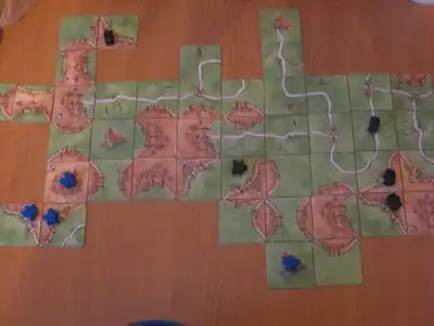 Снова игроки будут выкладывать тайлы, на этот раз, шаг за шагом исследуя новые земли. Как вы понимаете, к базовому механизму составления карты местности из квадратов может быть придумана масса правил подсчёта очков. Так вот, в этой версии Каркассона очки считаются совсем по-другому, но разнообразия в игру это мало привносит, да и иллюстрации не то, чтобы превосходны, потому и широкой популярности эта игра не нашла.