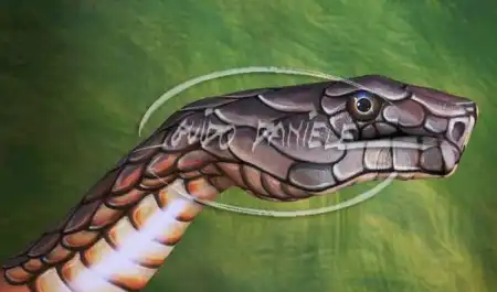 Создает необычный боди-арт, яркие телевизионные и театральные декорации, иллюстрирует книги, пишет фрески.