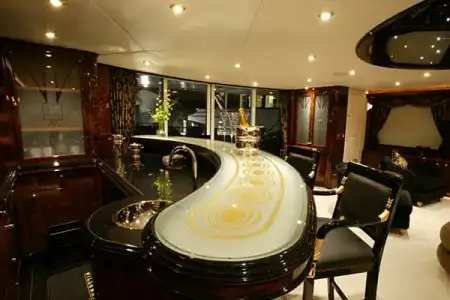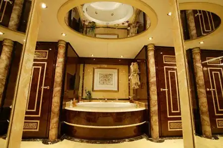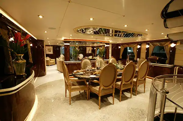 Яхта, окрещенная “И Мира - Недостаточно” - разработана голландским военно-морским архитектором Франком Малдером и построен в Голландии. Это обтекаемое , мощное судно может достигнуть скоростей в 65 узлов или выше при пиковых океанских условиях на ее дизелях Paxman и турбинах Lycoming. Внутренний проект яхты сказочно-богатый, с винтовой лестницей, соединяющей три палубы, мерцающий мрамор и яркий блеск грецкого ореха , итальянская мебель с тканями на основе высоких технологий, кристаллы Swarovski, великолепно оборудовали ходовую рубку, с 42″ плазменным телевидением, роскошный аппартамент владельца с мраморной ванной, и четырьмя дополнительными купе.