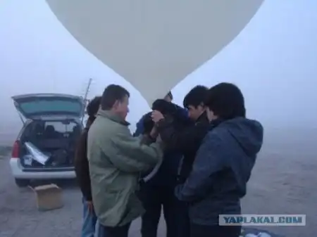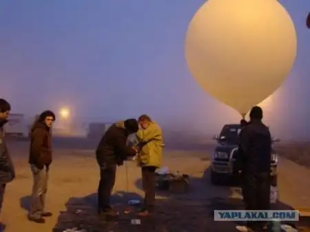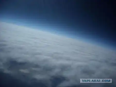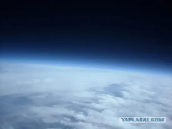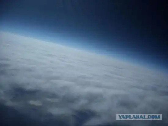 Суть происходящего - дешевая фотокамера, шар, радиопередатчик - все это устройство для путешествия в стратосферу. Высота подъема примерно 30 км. Очень красивые фото.