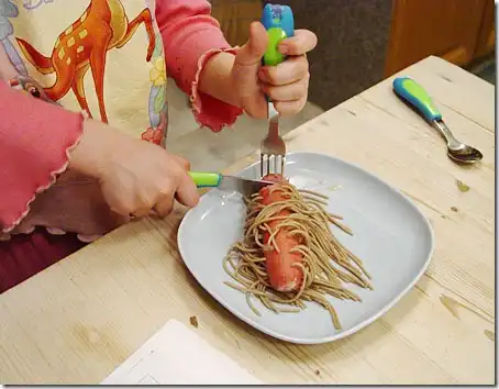 Интересно наблюдать реакцию гостей на такую вареную сосиску с гарниром из макарон.