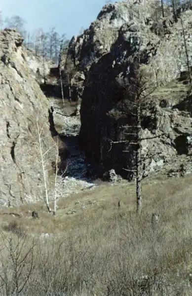 - 5 км от с. Малая Сыя, в сухом Логу на правом берегу р. Белый Июс. Длина ходов - 250м., глубина - 50м. Ледник.