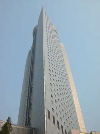 Гостиница весьма впечатлила - 47 этажей, 6 или 8 скоростных лифтов (в том числе 4 с прозрачной стенкой в сторону улиц). Отделка холла также весьма интересная (на снимке). Здание построено в 1995 году