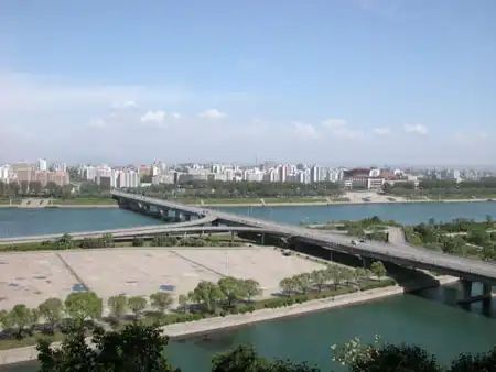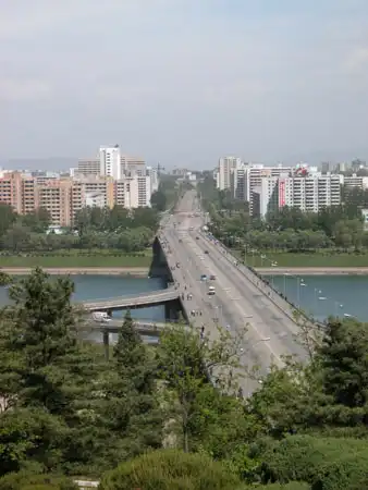Через Пхеньян протекают две реки - Тэдон (на этом и следующем снимках) и Потхон.