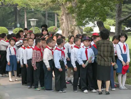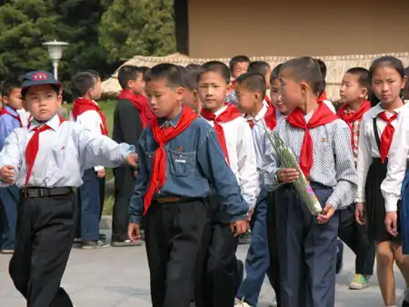 Заодно скажу, что аналога наших октябрят в КНДР не существует. Т.е. только пионеры, затем комсомольцы, затем партия (кого примут).