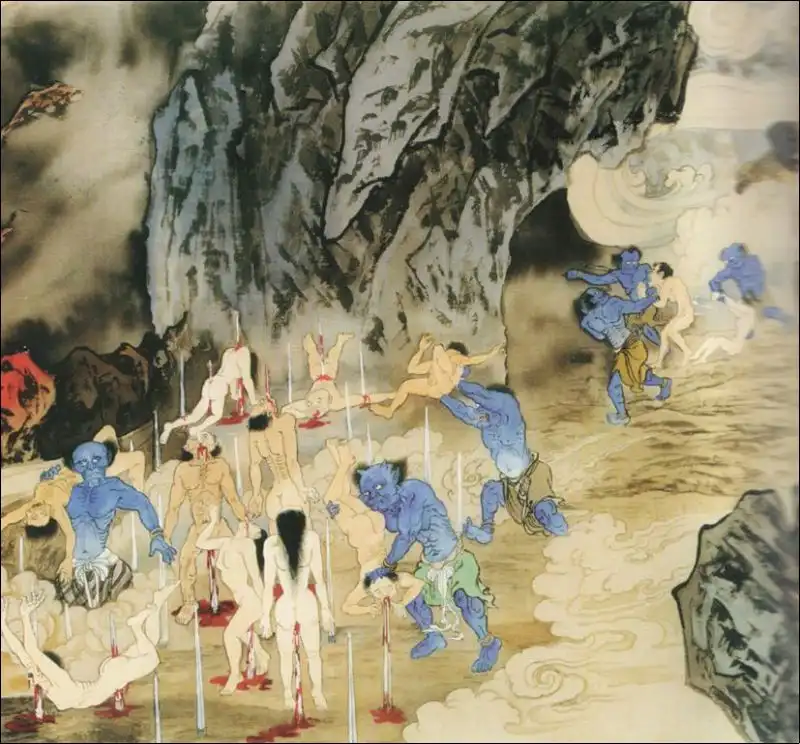#Каласутра-нарака (Kālasūtra) — ад чёрных сечений. Помимо мучений в предыдущем аду, чёрные линии проводят вдоль тела, и слуги Ямы рассекают по этим сечениям жертвы зазубренными секирами и острыми топорами. Пребывание в этом аду занимает 1296*1010 лет.